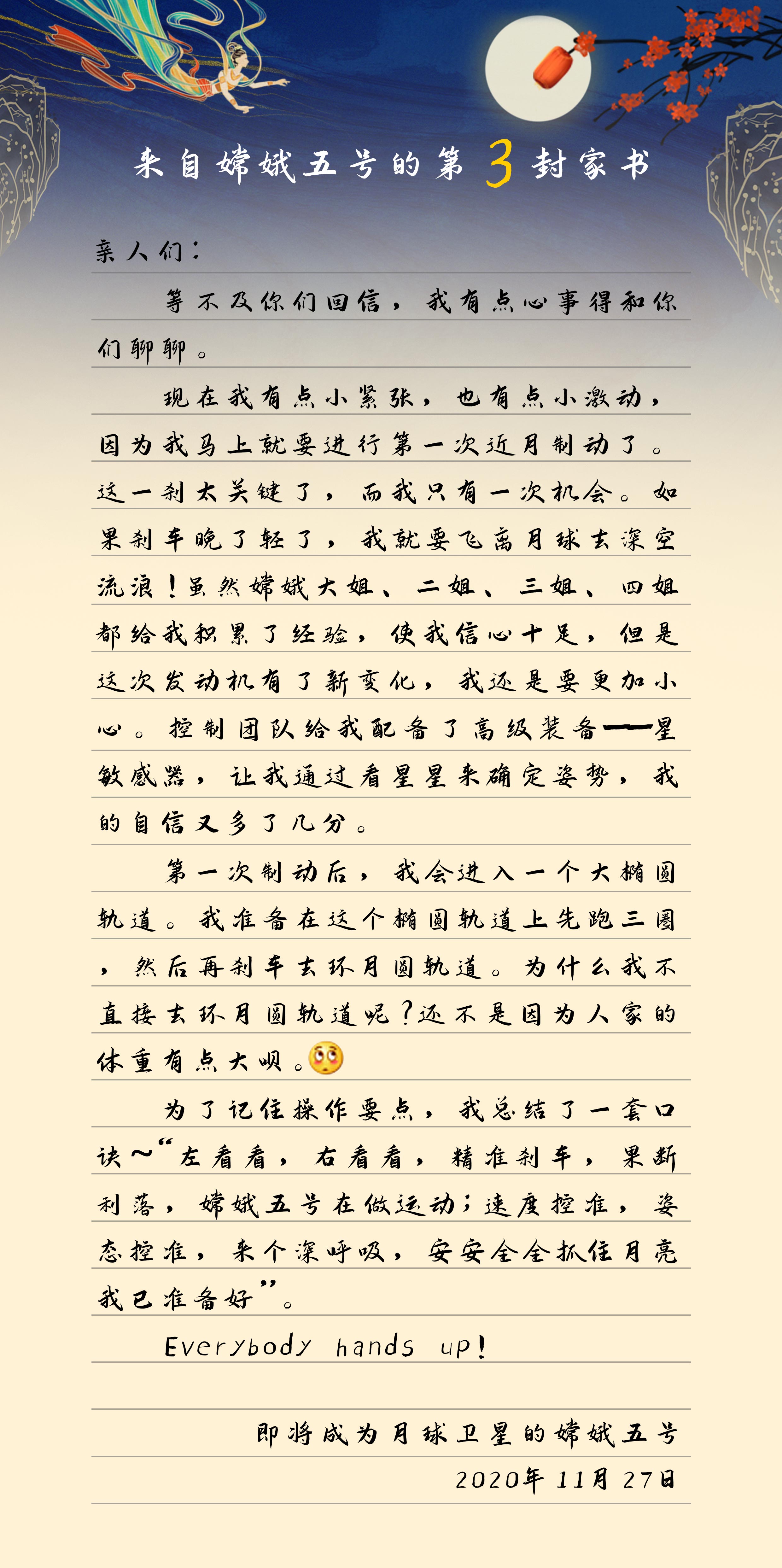 嫦娥五號第三封信:我將迎來一次關鍵剎車,Everybodyhandsup!