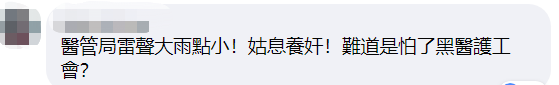 還有網友説,香港醫管局雷聲大雨點小,姑息養奸!“難道是怕了黑醫護工會”?↓