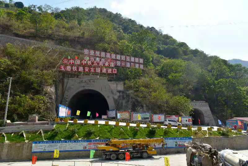 安定隧道位於雲南元江縣與墨江縣交界處,由中鐵十九局和中鐵五局共同承建,為全線一級高風險隧道。隧道共穿越20條斷層和2個向斜構造,集有害氣體、岩溶、軟巖、湧水、高地應力、高地熱等不良地質於一體,其工程規模、建設難度與工程風險在國內鐵路隧道施工領域都極為罕見,創造了中老昆萬鐵路玉磨段