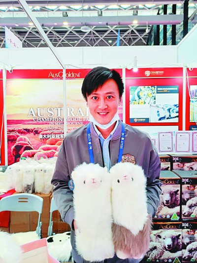 在澳大利亞展台前,參展商向觀眾展示具有當地特色的手工藝品。光明日報記者 盧重光攝/光明圖片