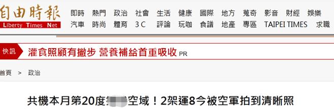 報道稱,根據台防務部門“即時軍事動態”公開信息,這是解放軍軍機11月以來第20度“襲擾”台外圍空域。