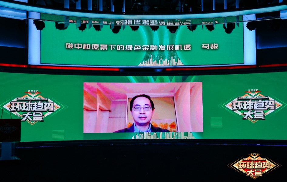 11月26日,在環球時報、環球網主辦的“2020環球趨勢大會—ESG高峯論壇”上,中國人民銀行貨幣政策委員會委員、中國金融學會綠色金融專業委員會主任馬駿,以《碳中和願景下的綠色金融發展機遇》為主題進行分享。