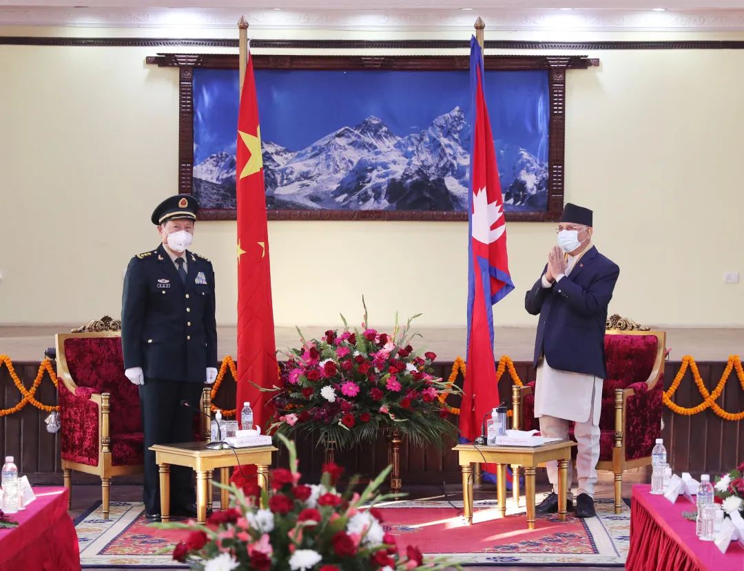 11月29日,尼泊爾總統班達裏、總理兼國防部長奧利在加德滿都分別會見到訪的中國國務委員兼國防部長魏鳳和。