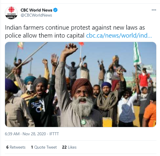 從一些印度和西方媒體早前的報道來看,這數千名印度農民之所以要來印度首都新德里抗議,是因為他們認為印度莫迪政府在今年9月出台的幾項針對農業的新法律對他們“不公平”。