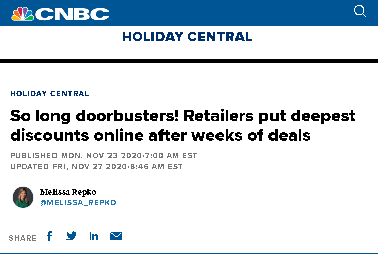 △CNBC稱,零售商將最大幅度的折扣放到了網上