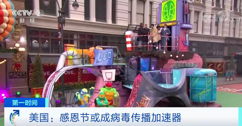 當地時間26日,一年一度的梅西百貨感恩節大遊行在美國紐約舉行,其標誌性的巨型氣球、絢麗花車等紛紛亮相。美國全國廣播公司報道稱,今年的大遊行增加了載有美國醫護人員的花車,向抗疫一線的英雄們致敬。而與此同時,更多的醫護人員則充滿擔心地奮戰在重症監護室中,他們警告稱感恩節可能會引發多起“超級傳播”事件,新增病例很快會擠滿急診室和重症監護病房。
