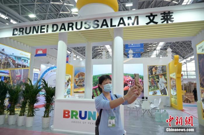 資料圖:廣西南寧國際會展中心,一名參展商在東盟國家館內拍照留念。 中新社記者 俞靖 攝