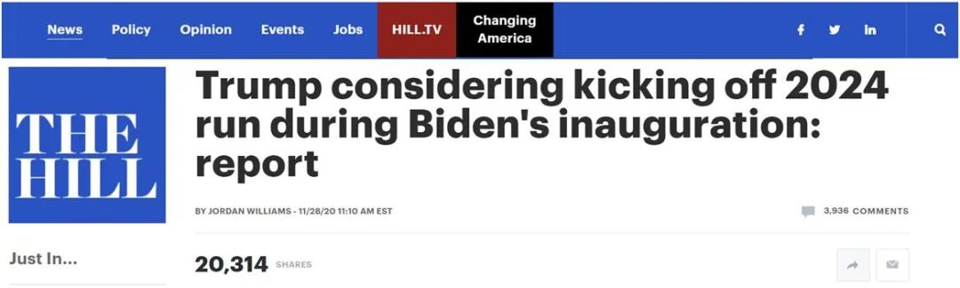《國會山報》:據報道,特朗普考慮在拜登就職(美國總統)期間開啓2024年競選活動