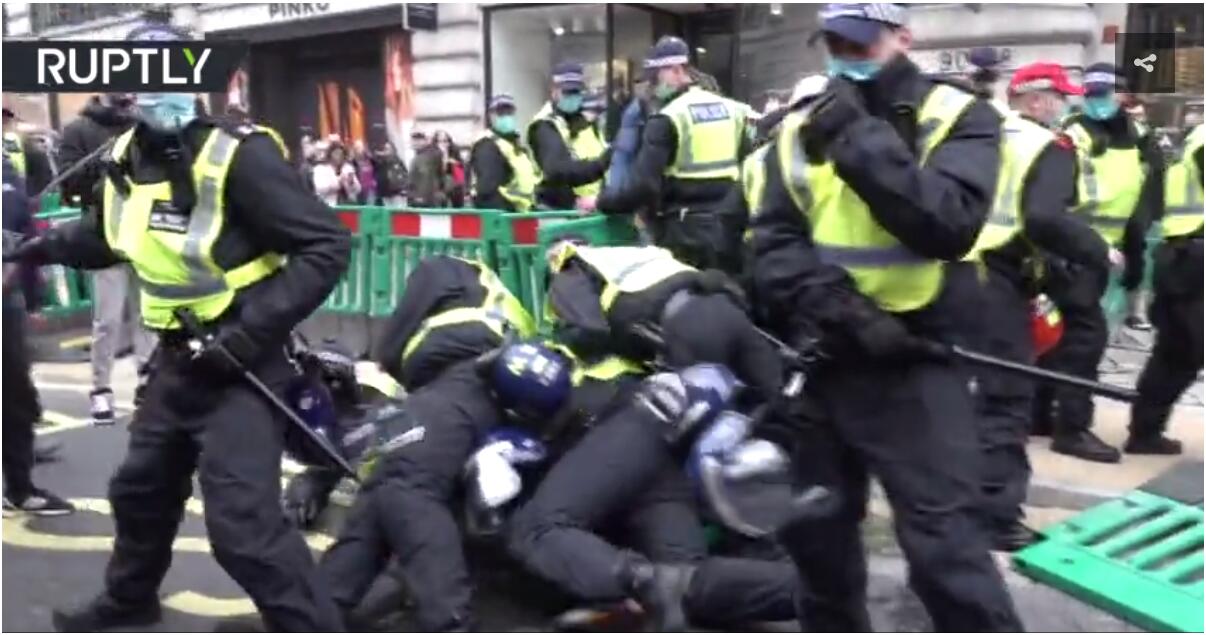 報道稱,抗議活動舉行之前,倫敦警察局就曾發佈聲明,警告計劃前往市中心國王十字車站的人:目前實施的封鎖措施不允許大規模人羣聚集。