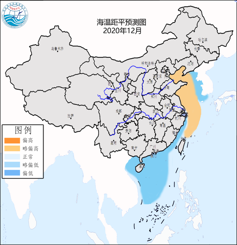 12月份,赤道東太平洋繼續處於拉尼娜狀態;渤海、黃海西部、東海北部海温較常年同期略偏高;黃海東部、南海北部海温較常年同期略偏低;其餘海域海温接近常年。
