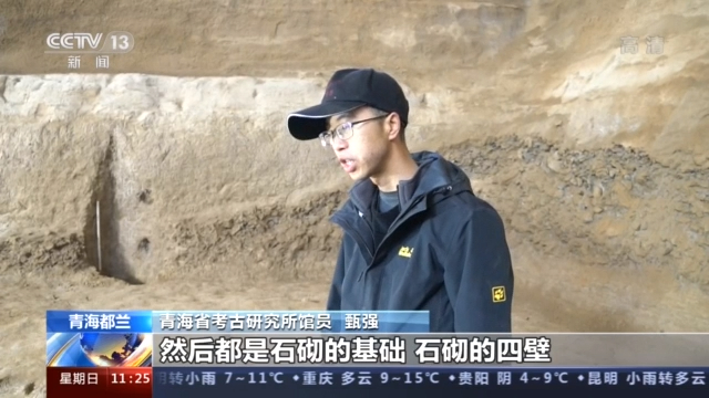 青海省考古研究所館員 甄強: 這個墓室主要都是磚木混合結構,然後都是石砌的基礎,石砌的四壁,然後裏面然後都是用祁連圓柏搭建的木結構。就是説我們這個墓葬,大概可能處於中唐時期,然後它這個木結構跟中原地區就是那種斗拱結構比較相似。