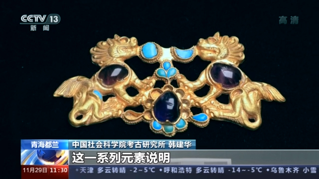 中國社會科學院考古研究所 韓建華: 這一系列元素説明這個都蘭是當時絲綢之路青海道上一個重要的節點,就是一個東西文化交流的中轉站。