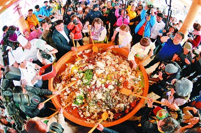 在金達萊村舉辦的大型朝鮮族美食製作活動“千人拌飯”。