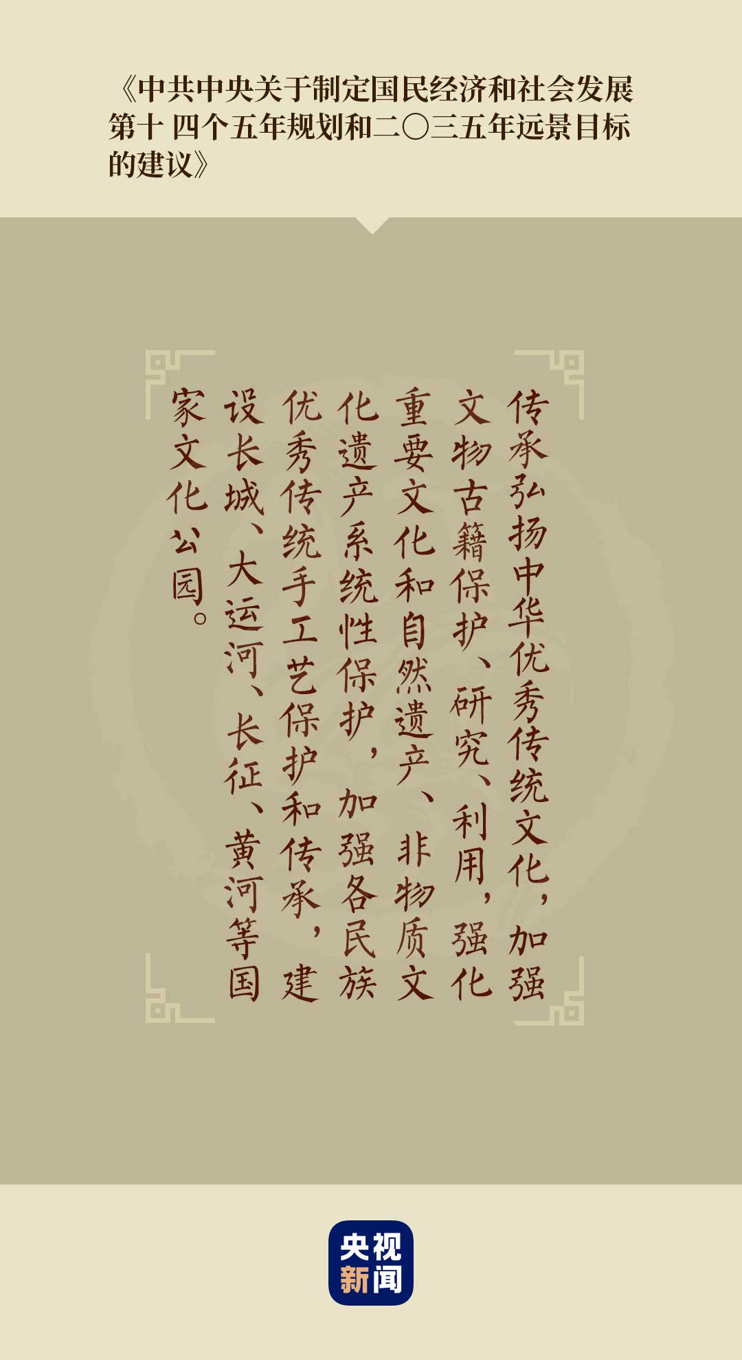 黨的十九屆五中全會審議通過的《中共中央關於制定國民經濟和社會發展第十四個五年規劃和二〇三五年遠景目標的建議》,提出“繁榮發展文化事業和文化產業,提高國家文化軟實力”的目標任務。