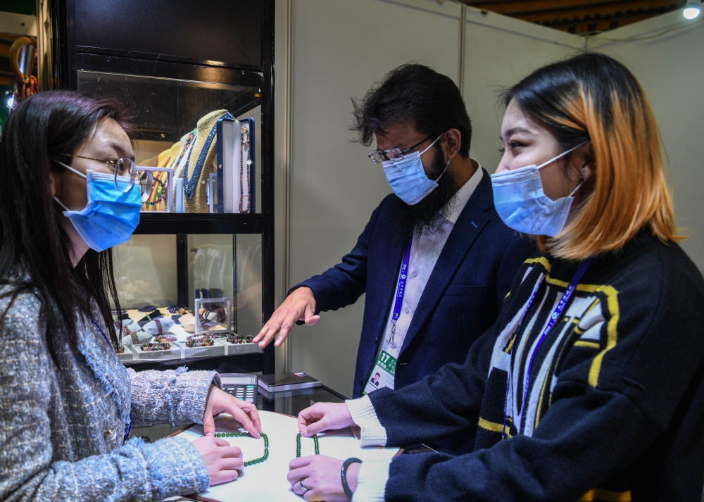 11月27日,在南寧國際會展中心展館內,人們在選購商品。(新華社記者張愛林攝)
