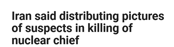 以媒:伊朗已發佈殺害核科學家的4名嫌犯照片,在全國進行搜索