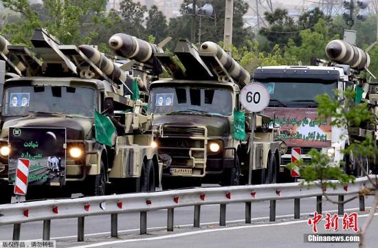 資料圖:停放在路邊的伊朗導彈車。