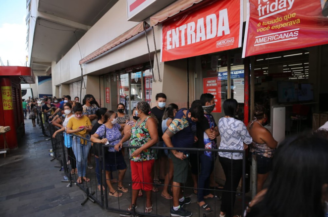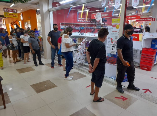 巴西全國商品、服務和旅遊貿易聯合會的一項調查顯示,近三分之一的商家在年終將利用打折促銷等手段吸引顧客消費,23%的受訪商家表示商品折扣將高達50%。雖然新冠疫情使得今年更多商家增設了線上銷售平台,然而這個週末,巴西多個城市的商場和店鋪門口仍出現了購物民眾排隊等待購買打折商品的情況,街道和店鋪中的人羣明顯增多。在位於巴西東南部的米納斯吉拉斯州首府、該國第4大城市貝洛奧裏藏特市的部分店鋪採取發放號碼牌的方式來控制進店顧客數量。當地時間27日,位於巴西南部的巴拉那州首府庫裏奇巴市一大型商場,因前去購物的顧客人數太多而被當地衞生監督部門強行提前結束營業。