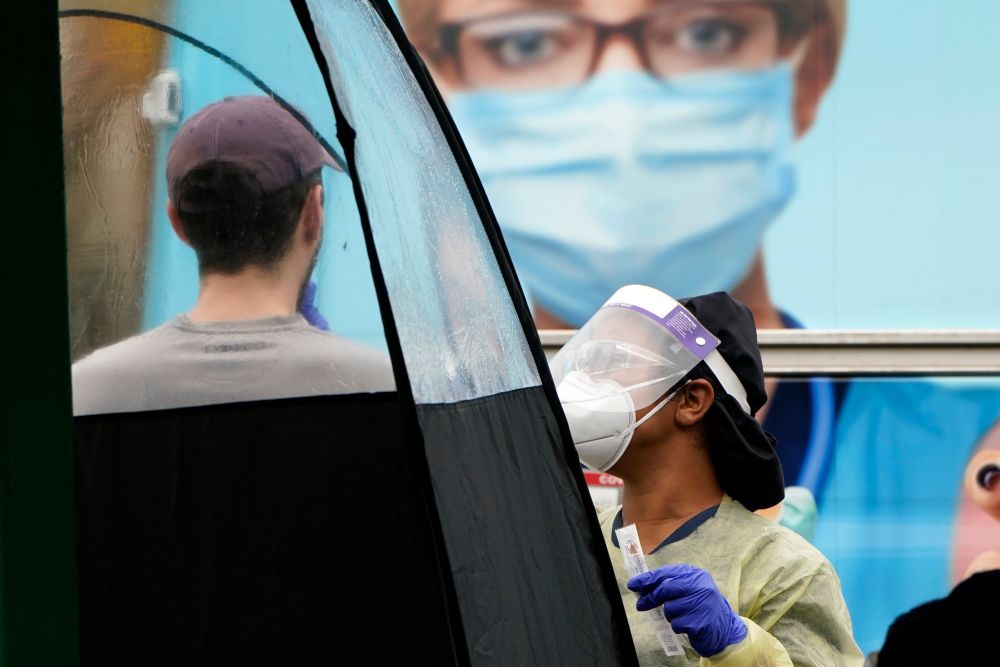 11月28日,在美國邁阿密,一名男子接受新冠病毒檢測。(新華社/美聯)