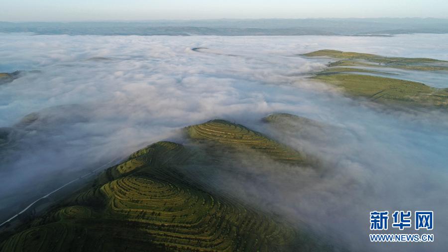 吃盡窮山惡水之苦的彭陽此後10任縣委書記都把種樹作為任內最大政績,全縣森林覆蓋率由建縣之初的3%提升至目前的30.6%。在彭陽縣“網紅打卡地”金雞坪,昔日赤焦的“火焰山”已經滿目蒼翠。從金雞坪向低處望去,只見雲霧繚繞中梯田延綿不絕,彷彿一個個印在西海固大地上的綠色指紋。