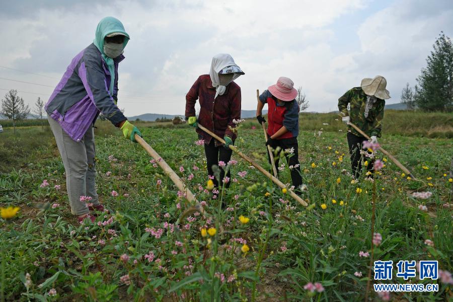 農民在寧夏西吉縣的艾草種植基地勞作(2018年8月30日攝)。新華社記者 王鵬 攝