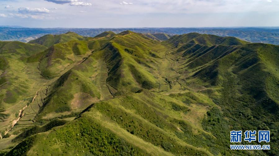這是6月3日拍攝的被綠色覆蓋的寧夏固原市原州區馬東山林場(無人機照片)。新華社記者 王鵬 攝