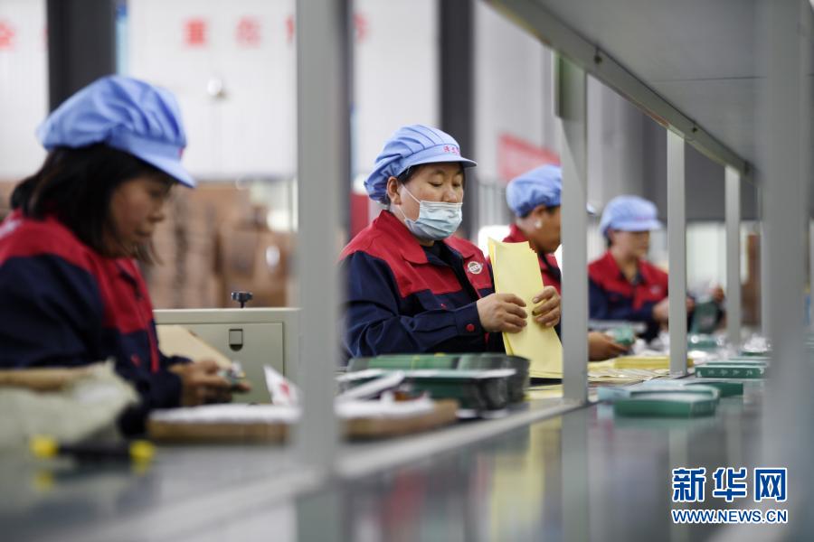 在位於寧夏西吉工業園區的寧夏澤艾堂生物科技有限公司,工人在包裝艾草產品(9月17日攝)。新華社記者 王鵬 攝