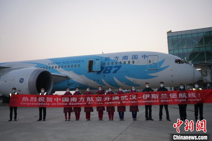 中新網武漢11月30日電 (魯力 桂文超 田盧山)編號為B-2733南航波音787寬體客機30日上午9時從武漢天河國際機場起飛前往巴基斯坦伊斯蘭堡國際機場,標誌着武漢直飛伊斯蘭堡航線正式開通。這是疫情防控進入常態化後,南航在湖北新開的首條國際航線,也是目前華中地區唯一直飛南亞的國際客運航線。