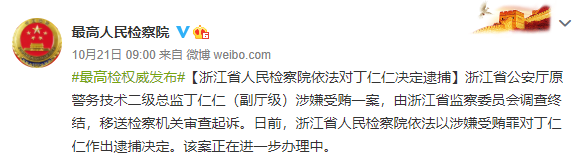 浙江省人民檢察院依法對丁仁仁決定逮捕