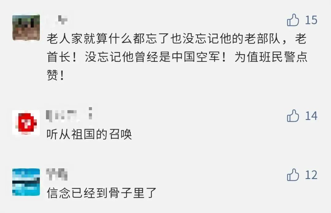 考慮到老人可能患有阿爾茲海默症,民警將他帶到值班室,遞上熱水,安排休息。在老人的隨身行李中,民警找到了其身份信息,老人姓周,是一名80多歲的退伍老兵,年輕時曾服役於某空軍學院 。