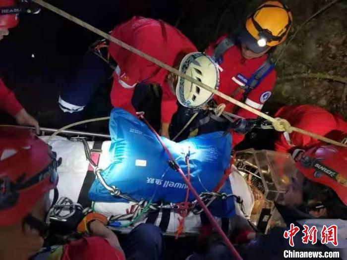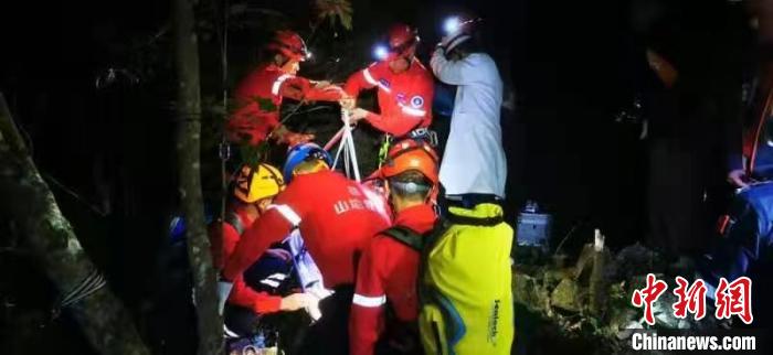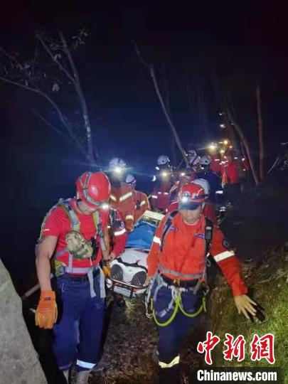 救援隊員合力搜尋到墜崖傷者並施以救援。現場醫生檢查後,發現傷者鼻孔出血,失禁,疑似顱腦有損傷,情況較危重。救援隊當即給其輸氧,並用擔架把傷員轉運下山。為了安全轉運傷員,救援隊架設路繩,搭建擔架轉運系統,採用人工接力方式運送傷員下撤。30日凌晨0點40分,傷員被運送至山腳救護車處。