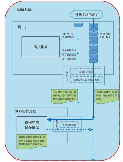 (二)新模式,實現“快速提離”。按照“六個統一”的流程,未布控的空箱經卡口超聲波檢測無需存放即可直接提離港區,在企業堆場暫時堆存,待海關電子放行後,即可直接使用空箱。