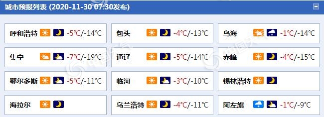 內蒙古各城市天氣預報。(數據來源:天氣管家客户端)
