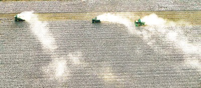9月30日,黑龍江省北大荒集團鶴山農場清晨收穫大豆。該集團發揮機械化、現代化、智能化科技優勢搶收糧食,確保顆粒歸倉。