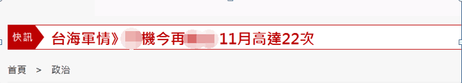 報道還稱,根據台防務部門發佈的“即時軍事動態”內容,這也是解放軍軍機本月30天以內,第22次進入外圍空域。