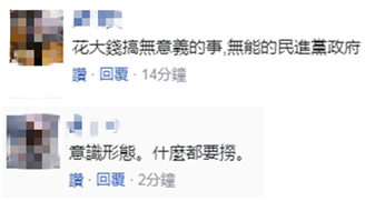 對此,有島內網友批評説,“花大錢搞無意義的事,無能的民進黨‘政府’。”“意識形態,什麼都要撈。”