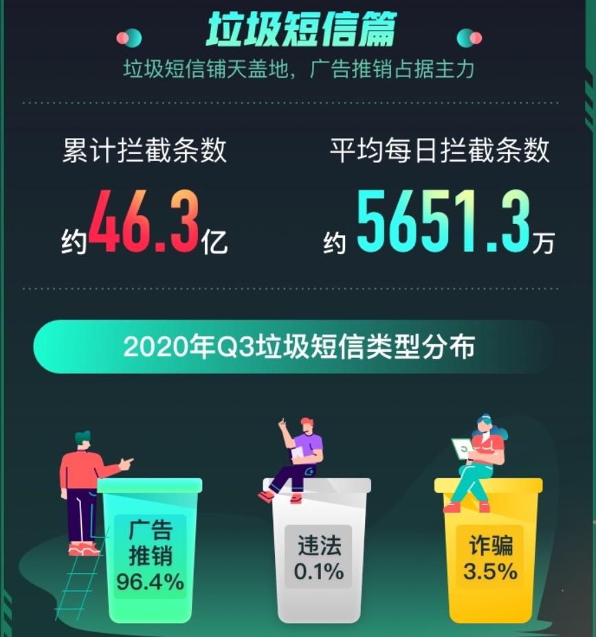 360報告:2020年第三季度共攔截垃圾短信46.3億條