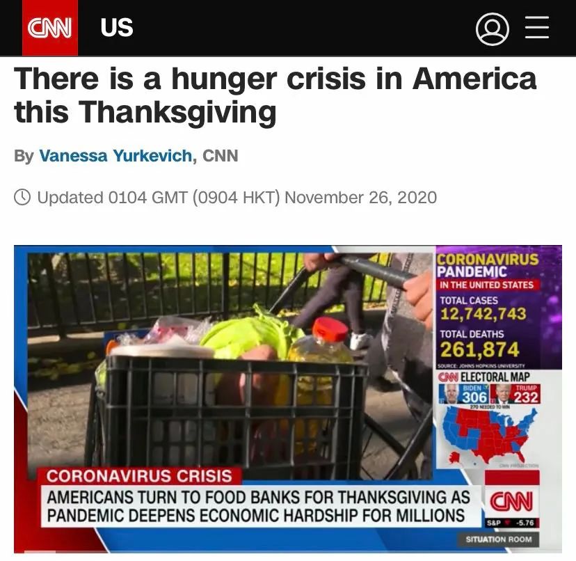 △美國有線電視新聞網(CNN):這個感恩節美國正在經歷一場飢餓危機。