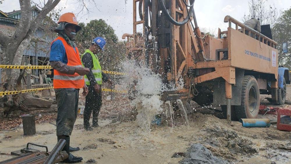 資料照片:柬埔寨磅湛省的水井施工現場。(新華社發)