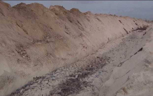 視頻顯示,埋葬在丹麥一處軍事區的水貂屍體從墳墓裏回到地面