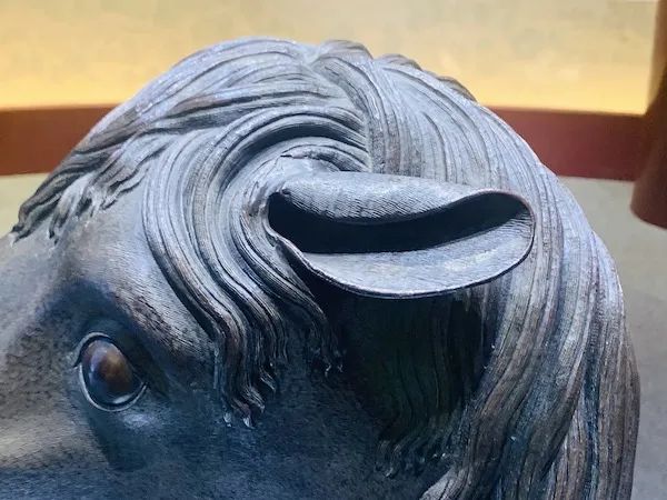 十二獸首中,牛首和馬首的鼻子造型也很值得一提,它們的鼻子以隆起表現其體積,且有鼻腔厚度,有解剖學的意味。“而在中國傳統的雕塑中,如敦煌莫高窟第五號窟中龕前廊左側的踏牛天王中,牛的鼻子造型則是凹進去的,且沒有鼻子厚度的表現。同樣手法的還有湖南嶽陽桃花山初唐瓷俑,均強調孔的意味,此表現差異大抵與中國傳統哲學思想緊密關聯。” 《圓明園十二生肖銅獸首的西方韻味、雕塑語言傾向》一文中寫道。