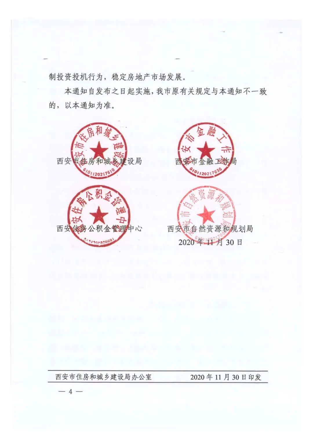 各區縣、開發區(含西鹹新區)要落實屬地主體責任,加強管轄區域房地產市場運行態勢的監測和房價調控,加強供需調節,完善住房供給體系,多措並舉穩地價、穩房價、穩預期,堅決遏制房價過快上漲。未實施住房限購政策的高陵、鄠邑等區縣及西鹹新區部分區域,要密切關注市場形勢,保障自住需求,抑制投資投機行為,穩定房地產市場發展。