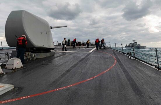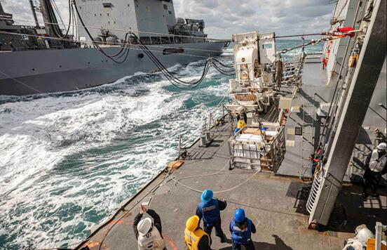 “麥凱恩”號導彈驅逐艦在東海與日本海上自衞隊的補給艦進行了海上補給作業