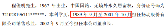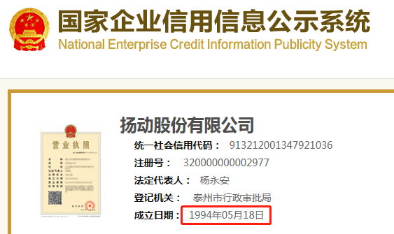 其中與公司實控人共同作為出資人的揚動股份,全稱是“揚動股份有限公司”,根據全國企業信用信息公示系統公示,該公司成立於1994年5月。但與此同時,招股書第123頁卻披露,公司的實控人程俊明早在1989年9月便擔任揚動股份銷售總監,這也與事實不符。