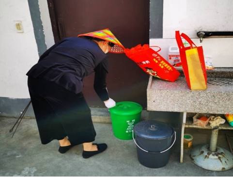 “有包裝的食物不可以直接扔到易腐垃圾裏,要把包裝拆開單獨放到其他垃圾裏。”今年11月以來,紹興市柯橋區湖塘街道嶺下村村民宣建英又多了一個新身份——“垃圾分類督導員”。每隔幾日,宣建英就要挨家挨户走訪潛蛟橋自然村266户人家,檢查村民家中的垃圾分類情況。遇到分類不規範的情形,她就認真指出,耐心指導。