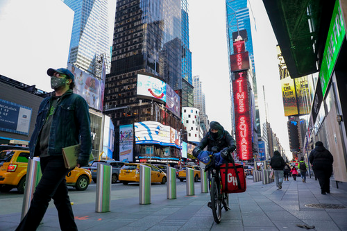 11月18日,行人走在美國紐約時報廣場。新華社記者王迎攝