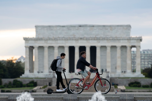 4月22日,在美國首都華盛頓,人們在林肯紀念堂附近運動休閒。美國總統特朗普當天簽署行政令,即日起60天內暫停部分外國人移民美國。新華社記者劉傑攝