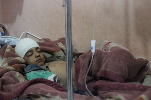 2016年11月4日,在阿富汗昆都士,一名在北約空襲行動中受傷的男孩正在接受治療。新華社/歐新中文