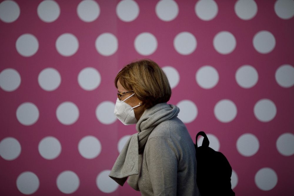圖為10月30日,在美國首都華盛頓,一名行人戴着口罩出行。(新華社發 沈霆攝)