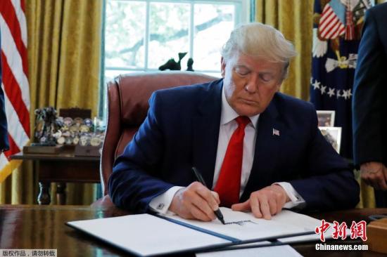 資料圖:2019年6月24日,美國總統特朗普在白宮橢圓形辦公室展示簽署的行政令,對伊朗最高領袖哈梅內伊及其領導下的機構實施制裁。